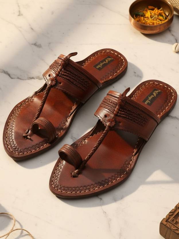 kolhapuri slippers for men add an effortless touch of ethnic sophistication to your outfit. The traditional braiding, sturdy sole, and detailed finishing make kolhapuri slippers for men suitable for both daily wear and special moments.If you're looking for footwear that blends tradition and comfort, then kolhapuri slippers for men are the ideal choice. The lightweight feel, smooth texture, and breathable design ensure long-lasting comfort. Over time, these kolhapuri slippers for men gain a unique character, making them even more personal to you.