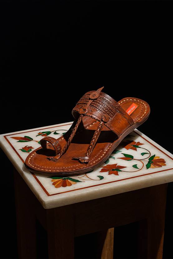 Every pair of Kolhapuri chappal for men is meticulously handcrafted using pure, high-quality leather sourced from ethical tanneries. The intricate braiding, hand-stitching, and natural polish reflect the dedication of artisans who have perfected this craft over generations.
