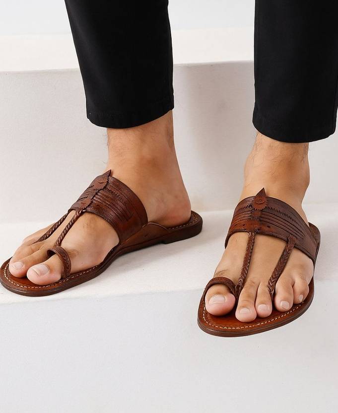 Every pair of Kolhapuri chappal for men is meticulously handcrafted using pure, high-quality leather sourced from ethical tanneries. The intricate braiding, hand-stitching, and natural polish reflect the dedication of artisans who have perfected this craft over generations.