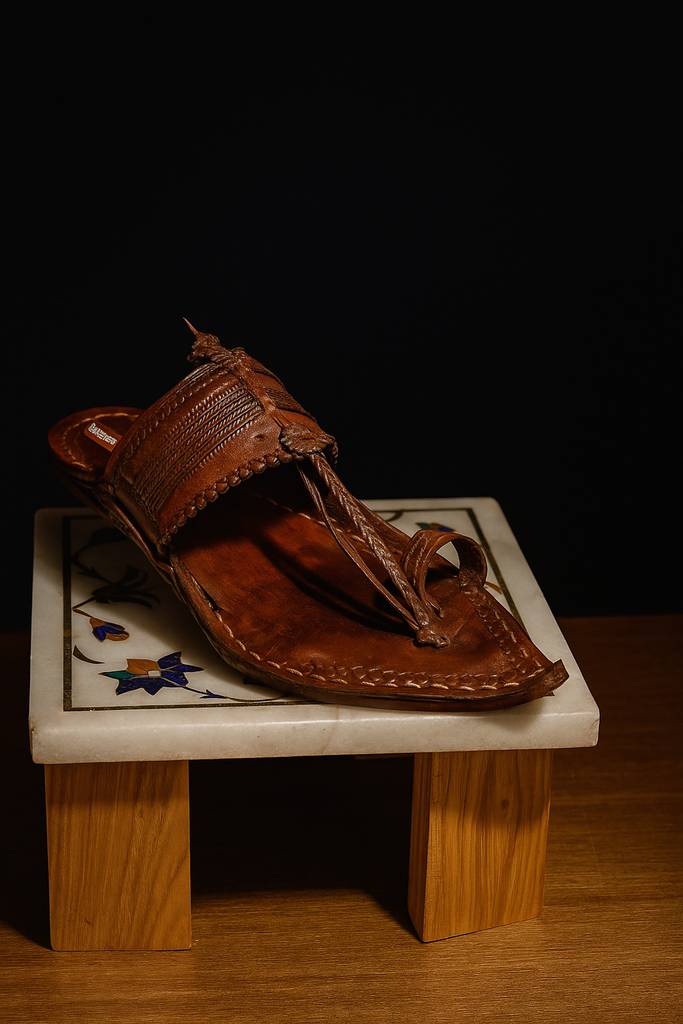 Every pair of Kolhapuri chappal for men is meticulously handcrafted using pure, high-quality leather sourced from ethical tanneries. The intricate braiding, hand-stitching, and natural polish reflect the dedication of artisans who have perfected this craft over generations.