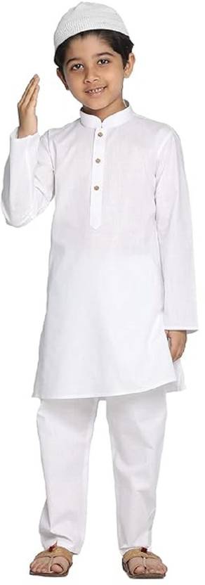 Kolva Boys Festive & Party Kurta and Pyjama Set (White Pack of 1)