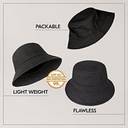Sun Bucket Hat for Women Cotton Hats Teenagers Girls Wide Brim Floppy Summer Beach Fisherman Caps UPF 50+ UV Packable (Black)