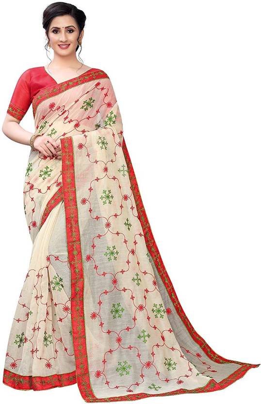 Embroidered Chanderi Cotton Blend SareeĀ Ā (Cream)