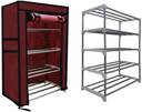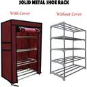 KOnline Metal 4 Tier Rack Shoe/Clothes/book stand Rack with cover -Mahroon Metal Collapsible Shoe Stand (Mahroon, 4 Shelves, DIY(Do-It-Yourself))