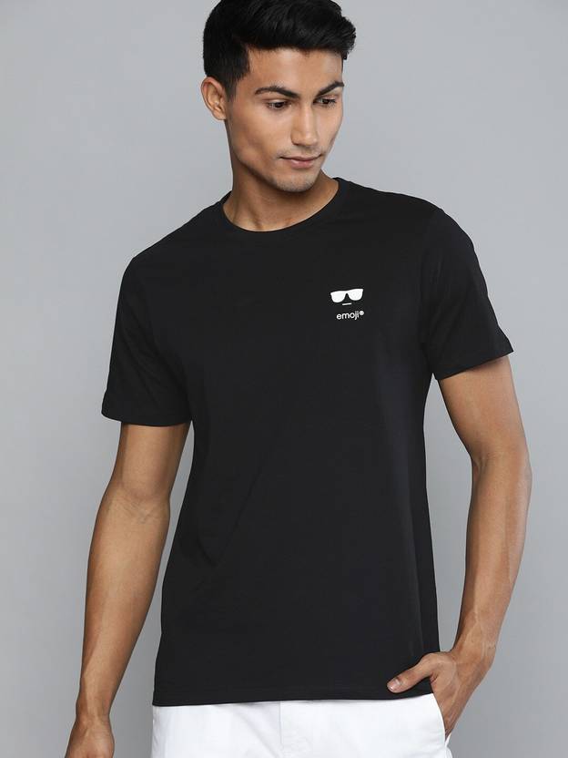 Black and White printed T-shirt, has a round neck, and short sleeves. Made of cotton, youll love the high-quality fit and feel of this Kook N Keech Emoji tee. Whether youre running errands or meeting friends for coffee, sport this black number with slim black jeans or cutoff shorts for a relaxed style.