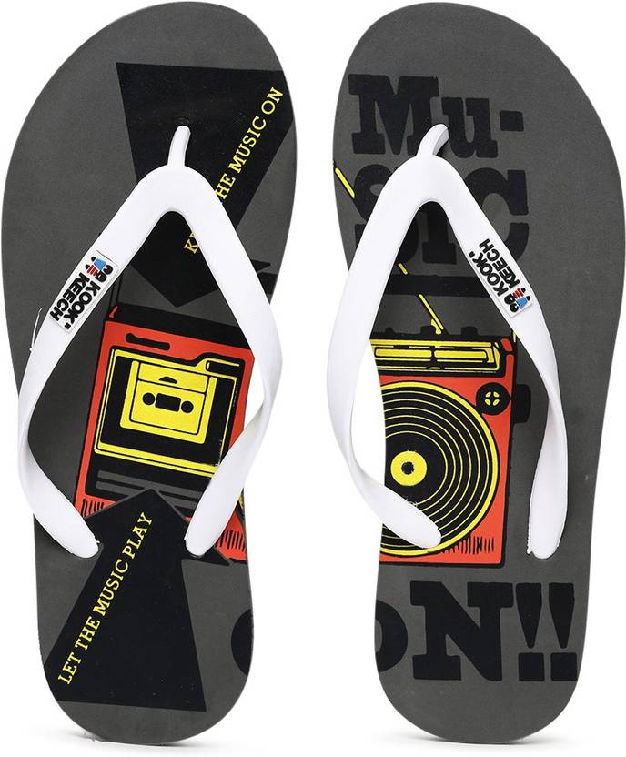 A pair of white and grey flip-flops. Textured rubber upper, has a thong-style strap. Cushioned rubber footbed, has printed detail. Textured outsole. Warranty: 3 months against manufacturing defects and bonding. It is time to upgrade your ensemble with an abundant dose of style by stepping into this pair of flip-flops. Team it up with a T-shirt and a pair of shorts for a relaxed look.