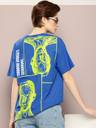 Women Printed Round Neck Cotton Blend Blue T-Shirt