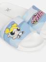 A pair of blue and white powerpuff girls printed slidersSynthetic upperCushioned footbedPatterned TPR outsole
