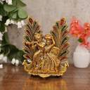 Koolwal craft Radha Krishna Idol Statue with Diya Peacock Design Decorative Showpiece Decorative Showpiece - 20 cm (Aluminium, Multicolor)