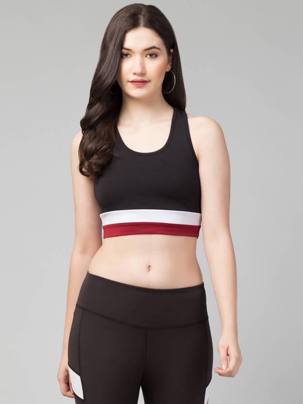 Kopykat Non Padded Wire Free Fourway Lycra Spandex Sports Bra Women Sports Non Padded Bra (Black)