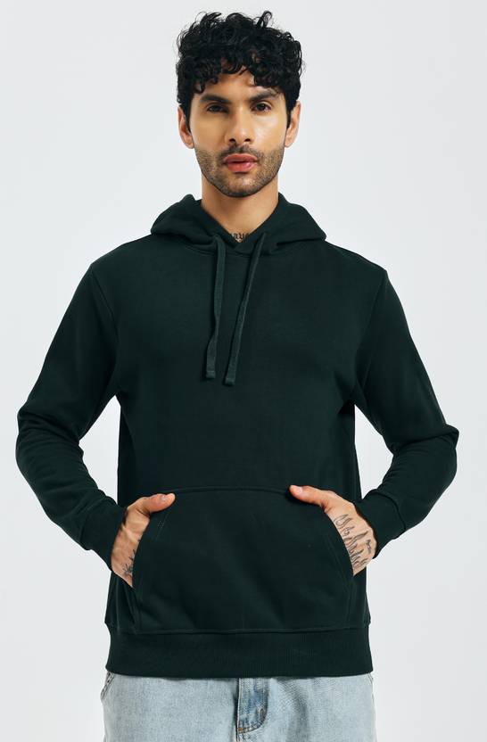 KOR Men Full Sleeve Solid Hooded Sweatshirt