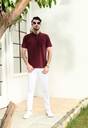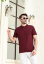 KOR Men Solid Polo Neck Cotton Blend Maroon T-Shirt