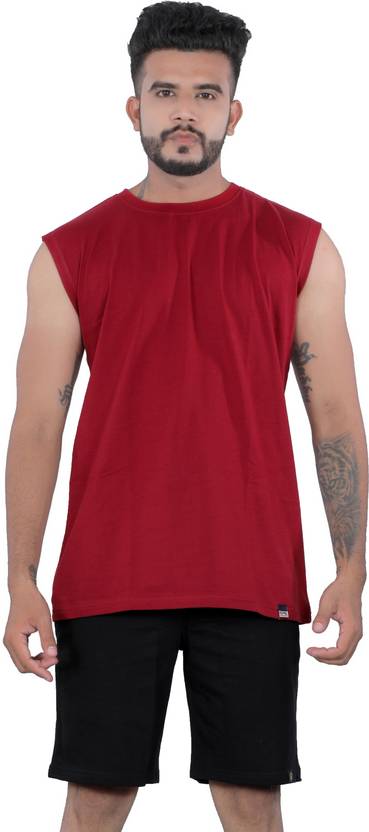Kore Cloting Point Solid Men Round Neck Maroon T-Shirt