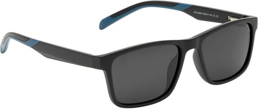 Polarized Rectangular Sunglasses (54) (For Men, Black)