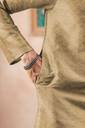 Region: Rajasthan, Hand block print straight kurta, Mandarin collar, Short button placket, Long sleeves with roll-up tab featurs, Three pockets, Indigo hand block print
