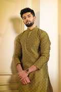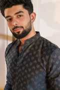 Elevate your festive and wedding wardrobe with the Koshin Men's Black Cotton Woven Print Kurta, featuring full sleeves and a sophisticated mandarin collar. Crafted from premium cotton, this kurta offers both comfort and style, showcasing an intricate woven print that exudes elegance. Paired with a classic white solid cotton pyjama, this ensemble is perfect for any celebratory occasion. The breathable fabric ensures all-day comfort, while the timeless design makes it a versatile addition to your ethnic collection. Stand out with this unique blend of tradition and modernity, making it an essential choice for the discerning gentleman.
