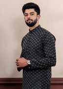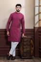 Elevate your festive and wedding wardrobe with the Koshin Men's Purple Cotton Woven Print Kurta, paired with a classic White Solid Cotton Pyjama. This exquisite ensemble features a full-sleeve kurta with a sophisticated mandarin collar, crafted from premium cotton for ultimate comfort and breathability. The intricate woven print adds a touch of elegance, making it a standout choice for special occasions. The accompanying pyjama offers a perfect fit, ensuring ease of movement. Ideal for those seeking a blend of tradition and style, this kurta set promises to make you the center of attention at any celebration.