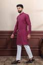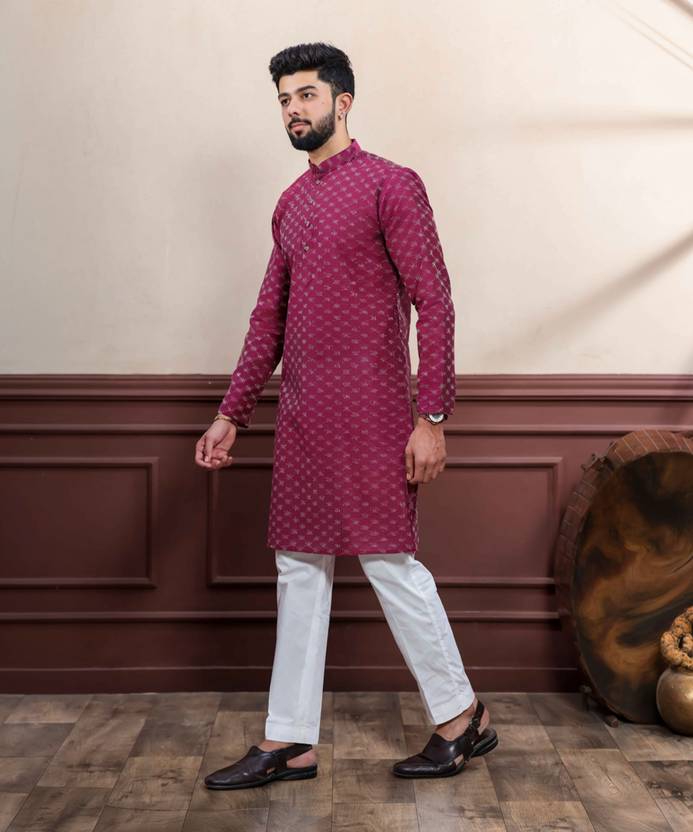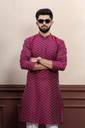 Koshin Men's Purple Cotton Woven Print Kurta with White Solid Pyjama
