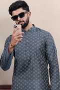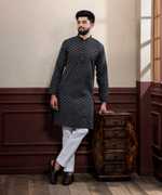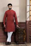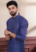 Elevate your festive and wedding wardrobe with the Koshin Men's Purple Cotton Woven Print Kurta, paired with a classic White Solid Cotton Pyjama. This exquisite ensemble features a full-sleeve kurta with a sophisticated mandarin collar, crafted from premium cotton for ultimate comfort and breathability. The intricate woven print adds a touch of elegance, making it a standout choice for special occasions. The accompanying pyjama offers a perfect fit, ensuring ease of movement. Ideal for those seeking a blend of tradition and style, this kurta set promises to make you the center of attention at any celebration.