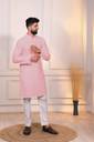 Koshin Men Paisley, Embroidered Straight Kurta (Pink)