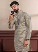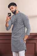 Elevate your traditional style with this stunning Khadi Silk kurta, expertly embroidered with intricate Chikankaari and sequence work.