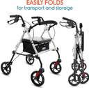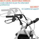SUPERIOR DESIGN: Imported light weight aluminum frame with unique features - such as a PU padded seat, a comfortable padded backrest, removable cloth basket and is easily foldable making it much easier to lift in and out of a vehicle or any storage situation. A sleek design and a beautiful, long lasting metallic paint.DUAL HEIGHT ADJUSTMENT : Dual height adjustment wherein the ground to seat as well as the height of the handles can be adjusted to accommodate all its users comfortably.