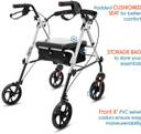 The premium KosmoCare product has a lightweight Aluminum frame and comes with a seat and backrest.Features:It is built on a Premium Aluminum Foldable frame.It comes with a durable padded seat that can be folded up or down and a padded backrest to provide adequate comfort. A concealed cloth bag is provided for storing personal day to day belongings which is also easy to detach if required.6" PVC castors are ideal for indoor and outdoor use.Dual height adjustment wherein the ground to seat as well as the height of the handles can be adjusted to accodmodate all its users comfortably.