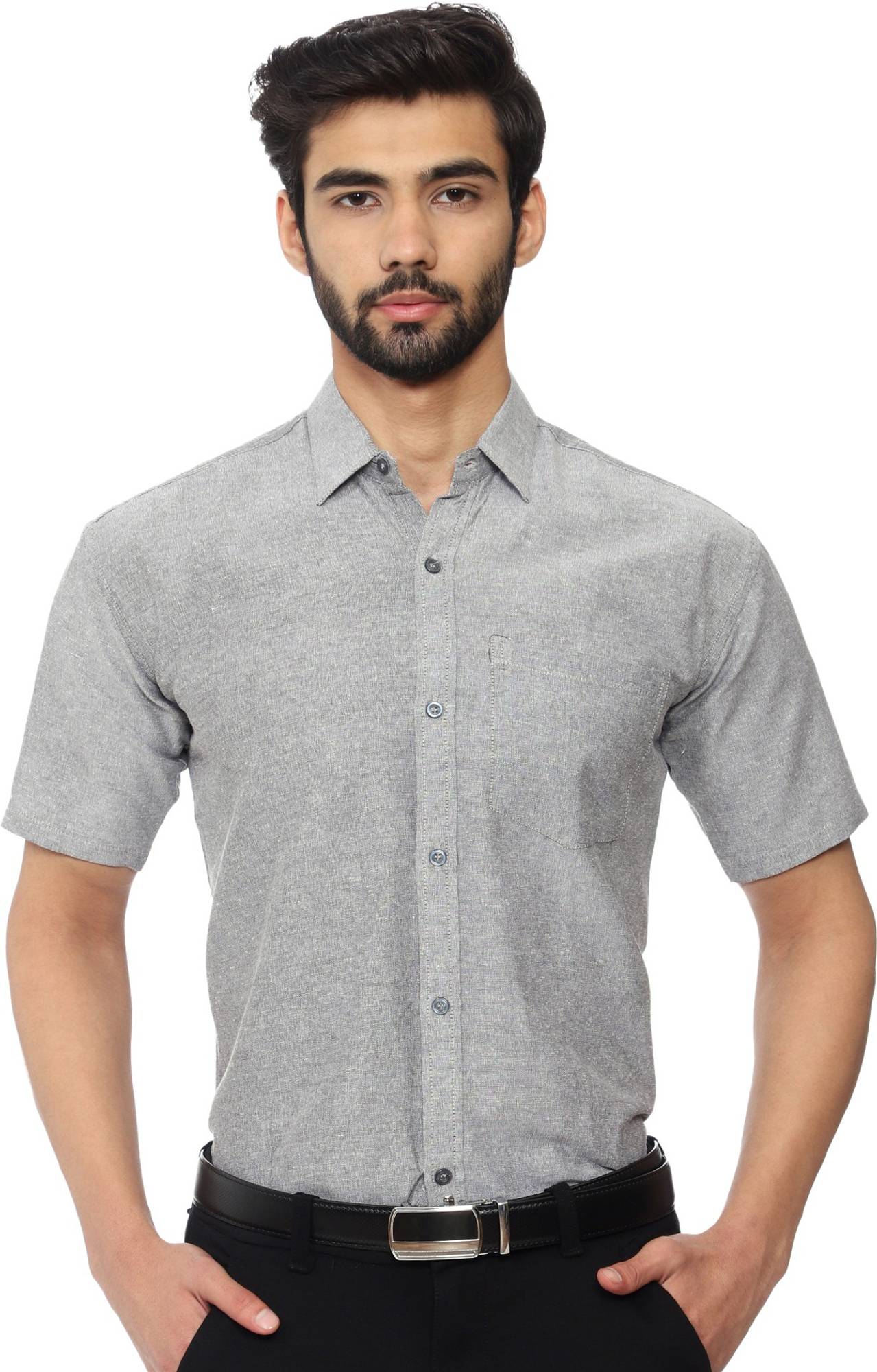 KOSZULE Men Solid Formal Grey Shirt