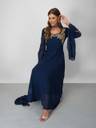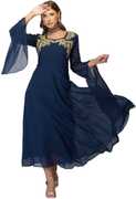 the gown's fabric is a key aspect, with options ranging from luxurious materials like satin, silk, georgette, and chiffon to more casual fabrics like cotton or jersey. the fabric description usually emphasizes the comfort, drape, and sheen of the gown. the long gown is often described in terms of its silhouette, such as a-line, mermaid, or empire waist, and may feature details like ruffles, pleats, or a high-low hem. neckline styles (v-neck, off-shoulder, boat neck) and sleeve types (sleeveless, cap sleeves, full sleeves) are also highlighted.information about the gown’s color and any patterns, such as solid colors, floral prints, or abstract designs, is provided. this helps in understanding the gown's visual appeal and suitability for different occasions. the gown is often categorized by its suitability for specific events, such as evening parties, weddings, formal events, or casual outings, helping buyers choose the right gown for their needs.fit details are provided, such as whether the gown is tailored, fitted, or flowy. information on available sizes, along with a size chart, helps in selecting the correct fit.sometimes the description may mention if the gown comes with additional elements like a belt or attached lining.
