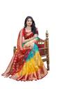 Material: The sari is made from art silk, which is a synthetic or artificial silk fabric. It is designed to resemble the texture and shine of real silk while being more affordable and easy to maintain.