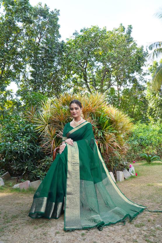 KOTHARI SBT Solid/Plain Bandhani Organza Saree (Green)