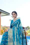 Length and Width: The sari typically comes in a standard length of 5.5 meters, which allows for draping around the body in the traditional saree style. The width may vary but is usually around 1.2 to 1.3 meters, providing ample fabric for pleating and creating the desired look.