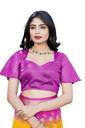 Material: The sari is made from art silk, which is a synthetic or artificial silk fabric. It is designed to resemble the texture and shine of real silk while being more affordable and easy to maintain.