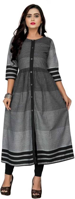Koton Collection Women Striped Pure Cotton Anarkali Kurta (Black)