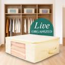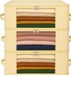 Kottify Storage Bag Cotton Canvas Clothes Storage Bags/Saree Covers with Zip for Storage Specially Woman Dresses, Sarees, Lehengas for Wardrobe Organizer (17 x 14 x 7 Inch) (3) (Beige)