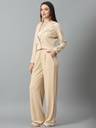 Be the epitome of class and grace while donning this beige cord set from kotty. Crafted from viscose rayon , this set features a spread collar blazer and pant set with an button closure waist. The cord set is also modeled with full sleeves.Kindly ensure the size chart before buying.