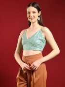 Give a beautiful upgrade to your dailywear repertoire with the mesmerising hues of this gorgeous beige sequins top from the latest offering of Kotty. Beautifully crafted in lycra blend premium gentle lustre replete with a soft touch and superb comfort, it's versatile well- and well-engineered crop fit embellished pattern silhouette make it a go-to choice any day. Pair it best with saree and long skirt, jeans for a stunning look.