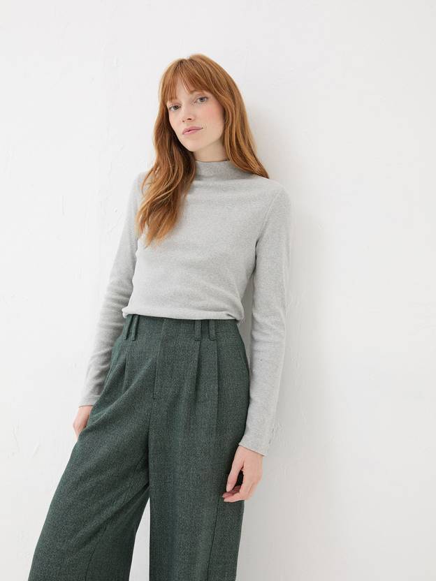 Flaunt your style with this Grey Top from Kotty. Tailored in regular fit, this solid top is light in weight and crafted from Cotton Blend fabric which will keep you at ease all day long. Featuring a full Sleeve and Solid design, this top holds a superlative attractiveness. Team this top with a pair of jeans and sandals to look effortlessly stylish.