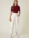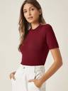 Give a beautiful upgrade to your dailywear repertoire with the mesmerising hues of this gorgeous maroon rib top from the latest offering of Kotty. Beautifully crafted in premium rib fabric for gentle lustre replete with a soft touch and superb comfort, it's versatile solid pattern, high- neck, short sleeve and well-engineered slim fit silhouette make it a go-to choice any day. Pair it best with denims for a stunning look.