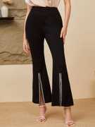 Give your regular look a stylish makeover with these black pants from Kotty. These smart high rise pants features a charming flared fit beautifully design with net,regular length. Made from polyster fabric, they will become one of your favorites this season. You can team them with a top to complete your look.