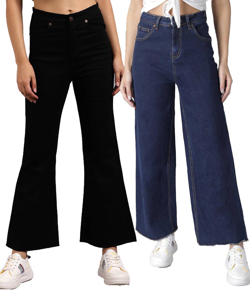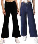 This kotty multicolor flared fit combo jeans look uniquely designed Product is made of Cotton Lycra Fabric very fine quality material and comes in various ranges & varieties and hence fulfills the need of all.Kindly check the size chart before buying.