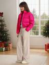 Women’s Solid Hot Pink Cropped Puffer Jacket made from nylon polyester fabric with a stylish stand collar and secure zip closure. Designed with a trendy cropped length and solid pattern, this jacket combines lightweight warmth with a bold fashionable look, perfect for casual outings, travel, and outdoor winter wear.