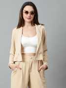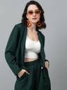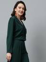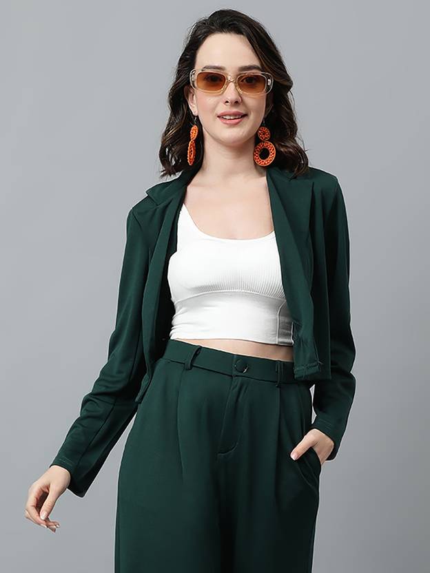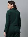 Cut to a relaxed silhouette, this dark green jacket from is perfect for a day out. Made from viscose rayon fabric, this jacket has regular fit for your convenience. Featuring a shawl collar, full sleeves and solid pattern, this jacket possesses a stylish enchantment. Team this jacket with a pair of contrast pants and ballerinas for a chic look.