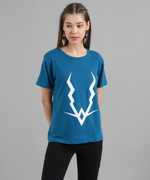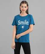 KOTTY Graphic Print Women Round Neck Blue T-Shirt