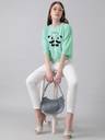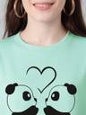 KOTTY Women Printed Round Neck Cotton Blend Light Green T-Shirt