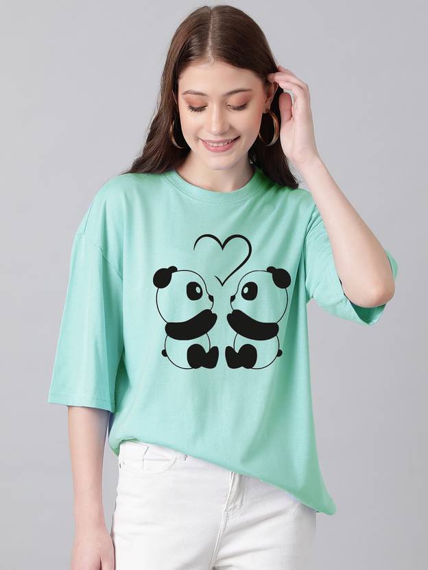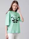 Add a contemporary edge to your looks with oversized light green t-shirt from Kotty. Made from cotton lycra fabric, oversized loose fit t-shirt will keep you sweat free all day long. Featuring a round neck, half sleeves and printed pattern oversized t-shirt boasts of in vogue charisma. Charm the world by coordinating oversized t-shirt with a pair of trousers and strappy flats.