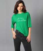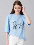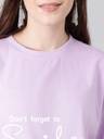 Add a contemporary edge to your looks with oversized Purple t-shirt from Kotty. Made from cotton blend fabric, oversized loose fit t-shirt will keep you sweat free all day long. Featuring a round neck, half sleeves and printed pattern oversized t-shirt boasts of in vogue charisma. Charm the world by coordinating oversized t-shirt with a pair of trousers and strappy flats.