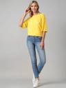 Brighten up your everyday style with this cheerful yellow KOTTY Women's Oversized T-Shirt. Made from a soft cotton blend fabric, it offers a relaxed and breathable fit for all-day comfort. Designed with a round neck, 3/4 sleeves, and an easygoing oversized silhouette, this tee is perfect for casual wear. The uplifting front text print — “Don’t forget to Smile” — adds a positive touch to your look. With a matching yellow inner side, it maintains a clean and cohesive vibe throughout.