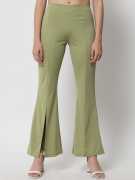 Give your regular look a stylish makeover with these light green pants from Kotty. These smart mid rise pants features a charming straight fit,ankle length. Made from polyster fabric, they will become one of your favorites this season. You can team them with a top to complete your look.