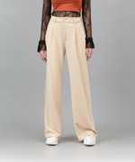 Pamper yourself with a stylish comfort in this cool pair of beige pleated pants from the latest collection of Kotty. Well crafted in premium cotton blend for unmatched drape complemented by fine softness and a smooth touch for ease of wear, these are tailored in a stylishly designed straight fit, side pocket with a high-rise silhouette to compliment your contours. Pair them with a contrast top for an alluring combination.Kindly ensure the size chart before buying.